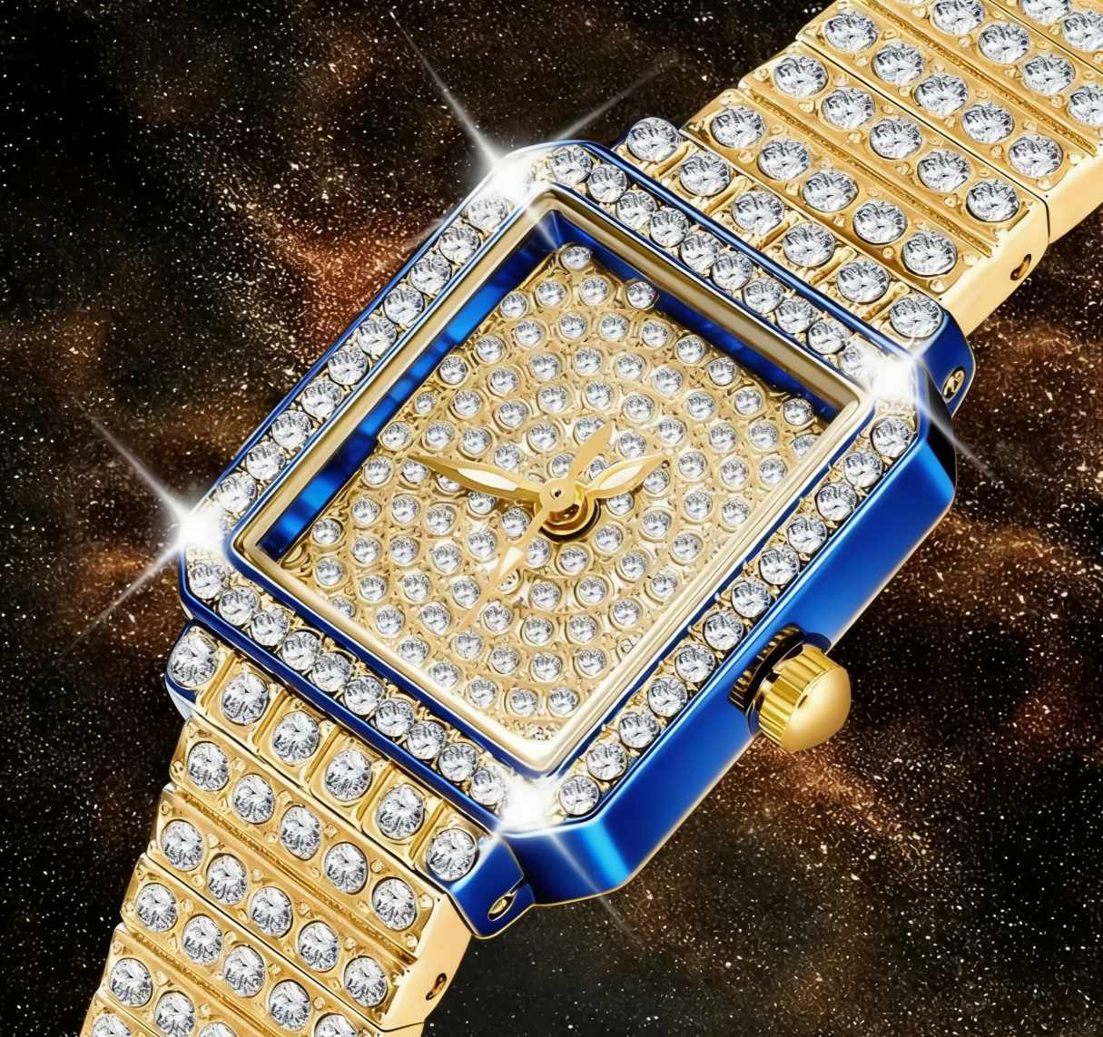 Diamond-Studded Automatic Mechanical Watch - Gold and Blue