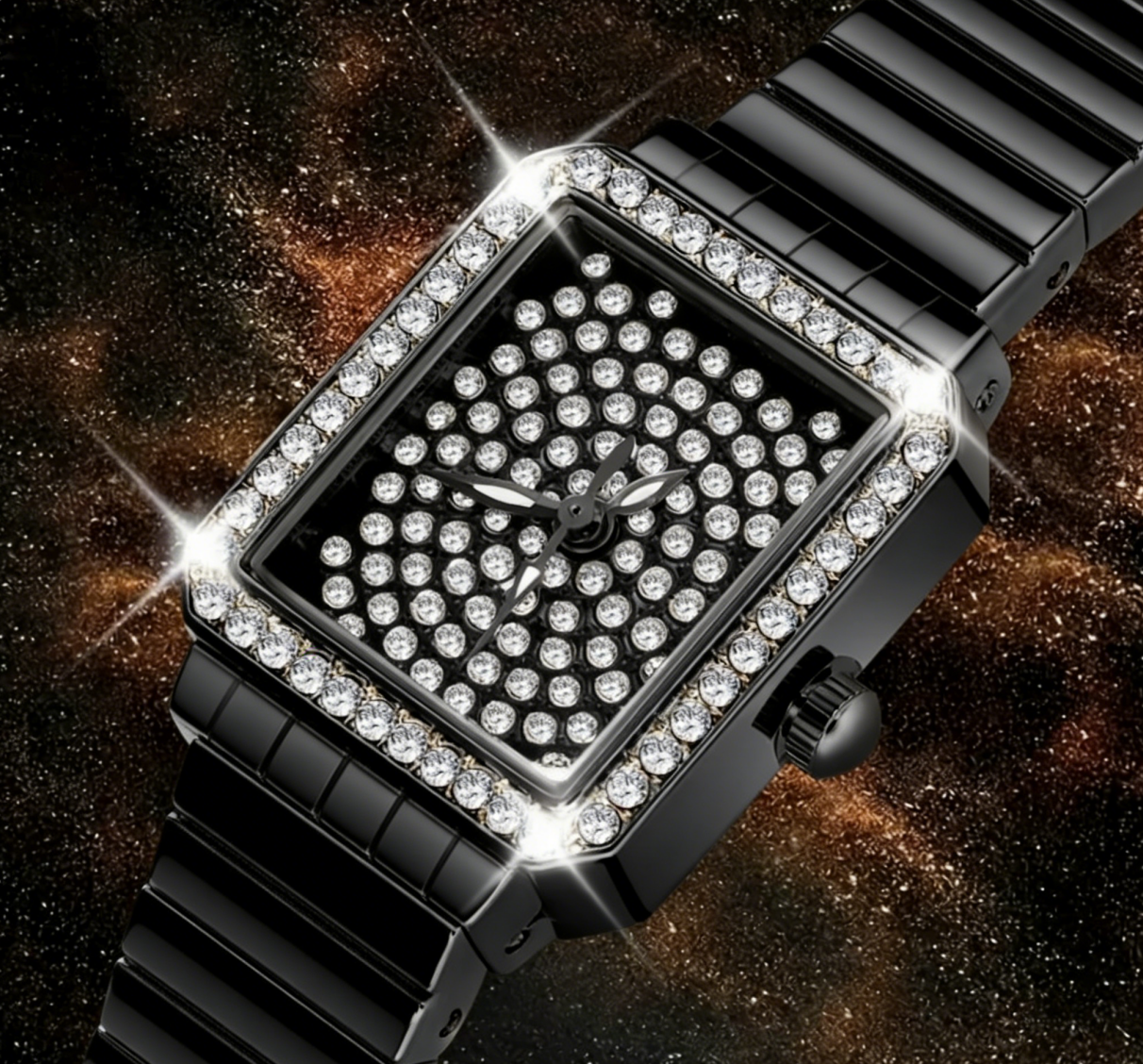 Diamond-Studded Automatic Mechanical Watch - Black